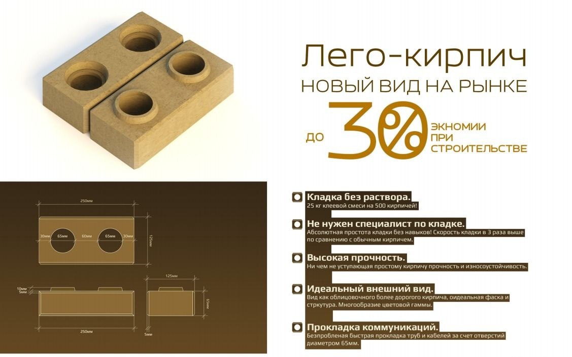 Это отличительная особенность ЛЕГО-кирпича. Он может использываться как для возведения зданий, строений, сооружений, так и для их облицовки и внутренней отделке