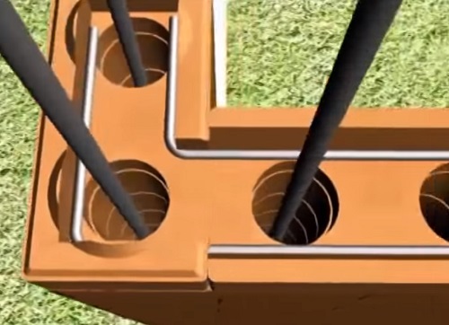 При постройке дома кирпич лего кладут на цементный раствор, используя уровень для первого слоя как по вертикали, так и по горизонтали. Кирпичи следующих уровней можно класть без уровня, так как за счет вставки в пазы получаются идеально ровные ряды.